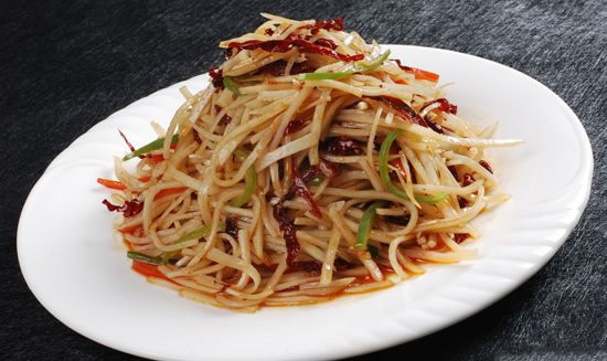 酸辣土豆丝是一道色香味俱全的汉族菜式。此菜是老百姓餐桌上最常见的家常菜。其主料土豆性平和胃,有改善肠胃功能、预防高血压的功效。辅料辣椒富含维生素C,可增强体力、冠状动脉硬化。中国家庭的桌子上应都经常出现这道菜吧?