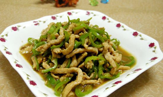 原产中南美洲的辣椒在明代传入中国后,因有开胃消食、散寒除湿的作用,在南方得以大量种植。青椒炒肉丝也随之成为普通家庭的盘中餐。清末进入富贵人家,据载,满族美食家、珍妃和瑾妃的堂侄孙唐鲁孙家试厨时,要求文火菜煨鸡汤,武火菜做青椒炒肉丝,其中肉丝要能炒得嫩而入味,青椒要脆不泛生就算合格。