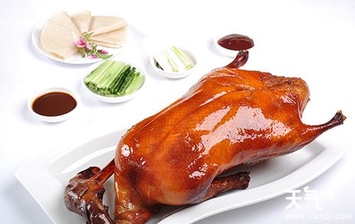 全聚德的烤鸭外形美观,丰盈饱满,颜色鲜艳,色呈枣红,皮脆肉嫩,鲜美酥香,肥而不腻,瘦而不柴,全聚德烤鸭有“京师美馔,莫妙于鸭”的美誉。