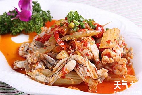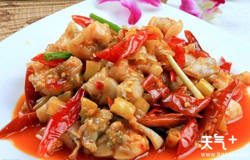 泡红辣椒去蒂去籽切成节,大葱洗净切成节,泡姜切成姜米。炒锅下油烧至七成热,将牛蛙下锅滑溜断生捞起。炒锅内下少许油烧热,下泡姜米、泡椒节炒出香味,下牛蛙,烹入料酒,放味精、大葱节簸转起锅装盘即可。泡椒和泡姜,是川菜提味的秘密武器,没有泡菜的酸香糅合在其中就无法成就很多川菜的地道美味,其中,最具典型的一道江湖菜便是泡椒牛蛙。泡椒牛蛙的兴起以及发展等相关文字介绍并不多,从有限的资料中可以看出,泡椒牛蛙在川菜系中占有无比重要的地位。