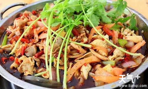 毛血旺,毛血旺以鸭血为制作主料,烹饪技巧以煮菜为主,口味属于麻辣味。起源于重庆,流行于重庆和西南地区,是一道著名的传统菜式。这道菜是将生血旺现烫现吃,且毛肚杂碎为主料,遂得名。毛血旺是重庆市的特色菜,也是渝菜江湖菜的鼻祖之一。