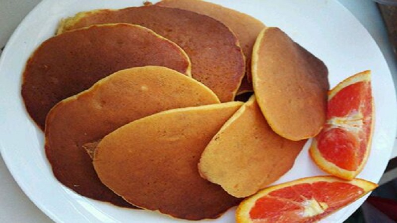 4、平底锅(松饼机)涂黄油,用厨房纸巾擦去多余的油份,将面糊分成3份圆形,小火慢慢烤,两面烤好即。