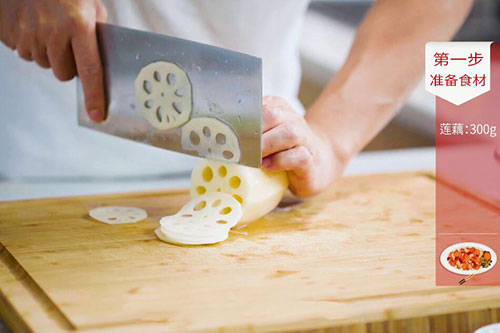 1.莲藕去皮洗净,切片放入清水中待用,芹菜斜切小块,小米椒3个切圈,蒜3瓣切粒;