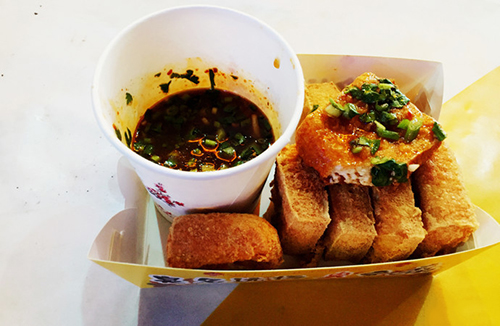 五娭毑臭豆腐的位置很不起眼,在一条小巷里,据说很远都能闻到他家的臭豆腐味道。五娭毑臭豆腐颜色是黑的,外脆里嫩,里面是白色的,配上辣椒和酱油,味道非常美,臭豆腐一般10块钱,可以堂吃,也可以打包,辣椒很辣,都是直接淋到豆腐上,豆腐好吃,蘸料有些辣,但是辣中带咸,小份六块,五块钱。