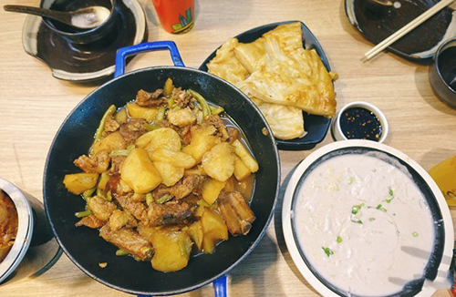 荣鹏风味烀饼在锦州有很多家分店,这家店就是位于人民街的,吃的是地道的东北菜。东北菜果然是分量惊人,一般两个人点两个菜都吃不完,烀饼是东北的特色,土豆豆角排骨烀饼是去这家店必点的,饼软软的,QQ的,松软可口,排骨,土豆和豆角都很入味,这家店的烀饼是锦州最有名的,一定要去尝尝。