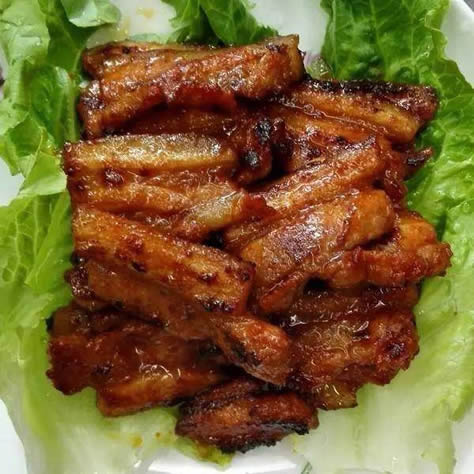 【秘制香煎五花肉】香煎五花肉是一道非常美味的下饭菜。五花肉煎的焦一些更好吃,煎出来的油可以用来炒菜非常的香;吃的时候如果嫌五花肉的片大,可以将煎好的五花肉用剪刀剪成小块,将五花肉蘸上酱料用生菜包裹着吃,里面还可以放点大蒜、小葱、青辣椒什么的,也可以再放点米饭,总之非常好吃。