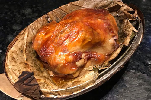 叫化鸡是一道味道香浓,口感鲜嫩的杭州名菜,好吃的叫花鸡肉质白嫩,酥不粘骨,食不嵌齿。这道菜历史悠久,据说在过去有一个叫花子,饥寒交迫的时候,偷了一只鸡,但是没有锅灶,就把鸡用泥包裹起来,煨烤成菜肴,吃的时候,发现格外好吃。