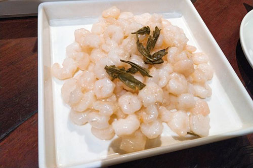龙井虾仁用的都是活吃的大河虾,配上了龙井茶,做出来的龙井虾仁色泽玉白,鲜嫩可口,芽叶碧绿,清香,色泽雅丽,滋味独特,让人回味无穷,在杭州菜中堪称一绝。