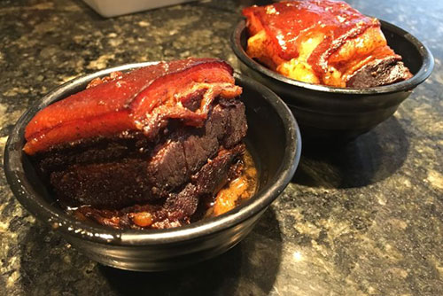 东坡肉用的是猪肉,经过严格工序炖制而成。东坡肉是约二寸许的方正形猪肉,一半为肥肉,一半为瘦肉,带着淡淡的酒香味,色泽红润,醇厚香醇,好吃香糯而不腻口,东坡肉也是杭州名菜之一。