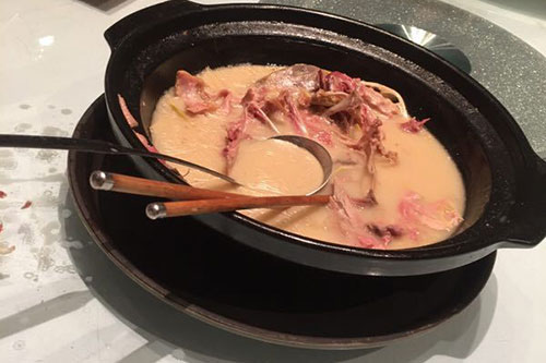 宋嫂鱼羹是杭州名菜之一,这道菜是传统菜肴,至今已经有800多年的历史了,不少人都会吃。宋嫂鱼羹用鳜鱼或鲈鱼作为主要材料,食材蒸熟之后取肉拨碎,加配料烩制成的一种羹菜。色泽黄亮,鲜嫩滑润。