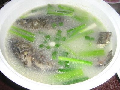 2、丝瓜去皮,洗净,切成段,与鲢鱼一起放入锅中,再放入生姜、精盐,先用旺火煮沸,后改用文火慢炖至鱼熟,即可食用。