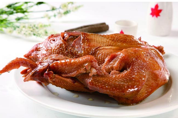 道口烧鸡是选用散养、食草优质的活鸡进行制作的,其制作之前需要完成清洗、沥水、研制的过程,需要加入秘制的配方,其配方中添加了陈皮、丁香、肉桂、砂仁、老姜等十多种佐料,其中的佐料是缺一不可的,在煮鸡的过程中需要具有一定的耐心,煮制的时间需要3-5小时,火候方面也需要进行适当的调整,所在制作技术方面的要求也是比较高的;道口烧鸡具有酥而不烂、好吃不腻、骨肉分离、咸淡适中、香味醇厚的特点,其颜色呈金黄色,看起来就使人食欲大增。