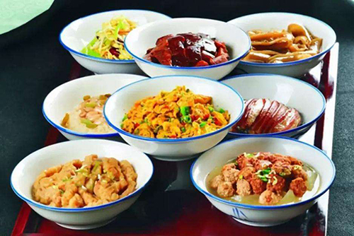 正定八大碗是一种非常具有地域特色的美食,主包含了四荤、四素,这四荤四素都是有讲究的。四荤主要是猪肉为主,总共有四道猪肉,分别采用了前膀肉、中肋肉、后臀肉、肘子肉,每一道肉做法和用料都不同,四素主料选用的是萝卜、海带、粉条、豆腐,所以这道菜不管是选料还是制作都很有特色,工艺精良,味道当然不用说了。