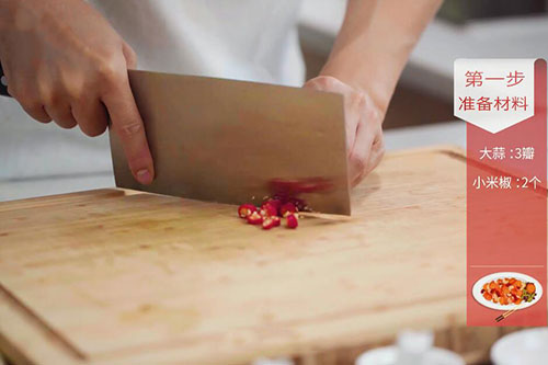 小米椒2个,蒜3瓣,葱2根, 蒜末,生抽1勺,醋半勺,蚝油半勺,白糖1勺;