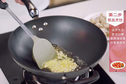 5.锅中放入适量油,油温烧至7成热,放入姜蒜末炒香;