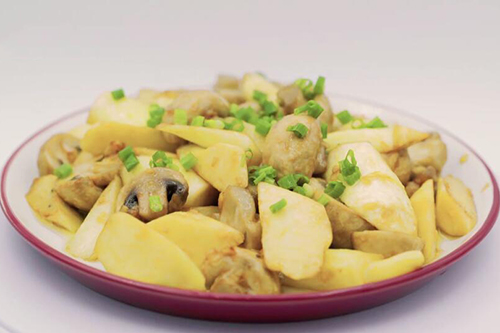 口蘑性平,味甘温,有强身补虚之功效,还有防癌抗癌及提高人体免疫功能和健肤作用,经常食用还有降低血压及血中胆固醇的作用,对防治肝炎及软骨病也有一定疗效。