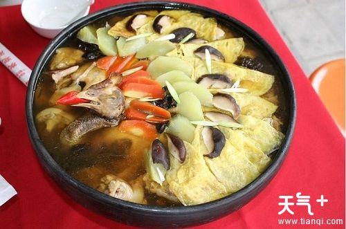 相传唐相房玄龄和杜如晦辅佐李世民夺取政权后,以汉代张良创制炖银耳的基础上加入枸杞制成,寓意大丈夫不仅要操守清白,更要有血气。此菜红白相间,香甜可口,为宴席上一道珍贵名羹,是老幼咸宜的滋补佳品。