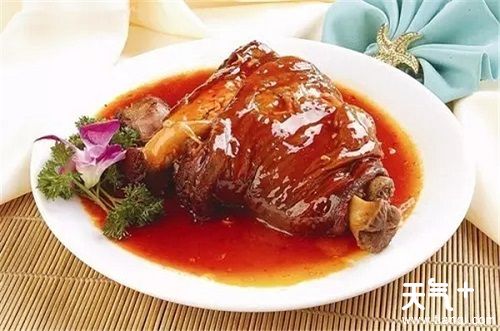 带把肘子是一道独具陕西大荔地方特色的汉族传统名菜,属于秦菜系。用猪的前腿做成的菜,做工考究,文火烧蒸,色呈枣红,形如蒲团,肥而不腻,瘦而不柴,品嚼味长,别有风味。据说在陕西大荔一带,逢年过节请客如果没有带把肘子这一道菜,就不能算全席。