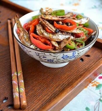 原料:小干鱼200克、豆豉1汤匙、青辣椒2个、红辣椒2个、大蒜4粒、生姜1块、盐适量、鸡粉1茶匙、食用油适量