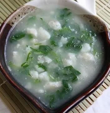 原料:黄花鱼200克、小白菜100克、蛋清1个、油2茶匙、淀粉2茶匙、盐1小勺、胡椒粉1/2小勺、香油数滴、葱姜丝少许。