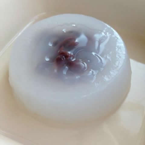 PS:还有一种方法,就是把皮先铺在沾水的保鲜膜里,然后放豆沙馅再包起来等放凉。保鲜膜法包出来的水馒头更圆一些。用马铃薯淀粉或者玉米淀粉做出来的水馒头透明度更高一些。