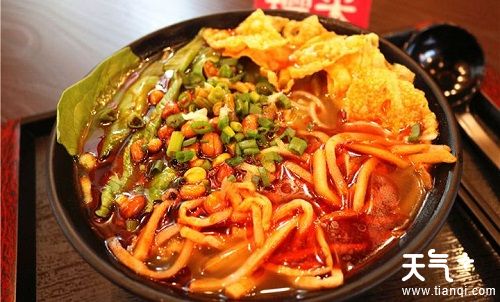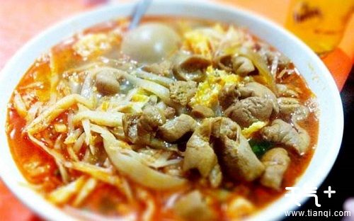 这是有着百年历史的南宁面食.据说,一老翁每天都光顾周记茶馆喝茶,有一天因感冒没有去茶馆,周记老板便以精制面条,佐以爆香的蒜末、豆豉、辣椒、酸笋、牛肉末、胡椒粉等,煮成热面条一碗,送予这位老友吃。