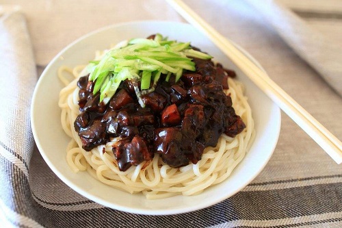 鲜面条,黄瓜,水萝卜,香菇,黄豆酱;