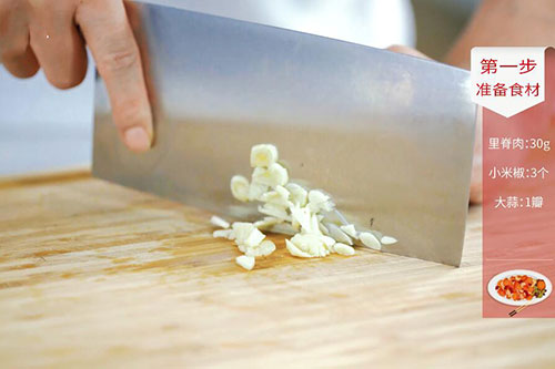小米椒3个,蒜1瓣,盐半勺,色拉油2克;