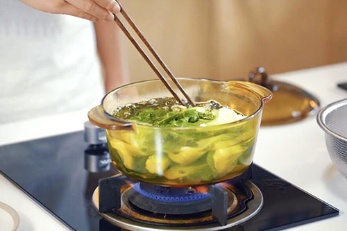 3.锅中放入适量水烧开,放入上海青、盐半勺、色拉油2克焯水。断生后捞出沥干装盘;