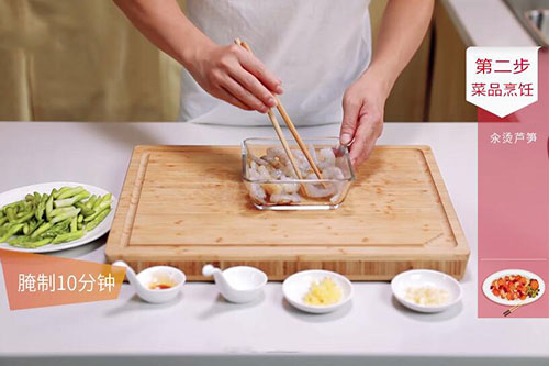虾仁300克,芦笋200克;