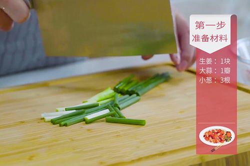 2.小葱3根,葱白部分切葱段,葱绿切葱花;