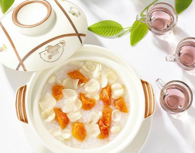 取薏仁150克,莲子50克,红枣(去核)五颗,冰糖15克,冷水1000毫升。将薏仁淘洗干净后置于冷水中浸泡三个小时,捞出沥干水分后待用。将莲子去心,用冷水洗净后待用。将锅内加入1000毫升的冷水,放入薏仁,用旺火烧沸后,再加入莲子、红枣,一起焖煮至熟透,最后加入冰糖熬成粥即可食用。薏仁莲子粥具有美白保湿的功效,可消除雀斑、老年斑、蝴蝶斑等。山药枸杞粥 女性嫩白肌肤必吃的五种美食