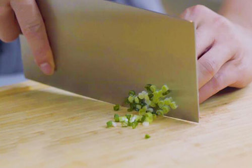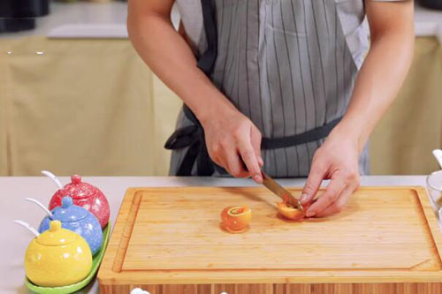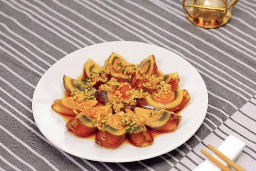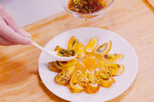 2、切松花蛋的时候,把刀放进热水中烫一烫,切出的松花蛋更加有型。