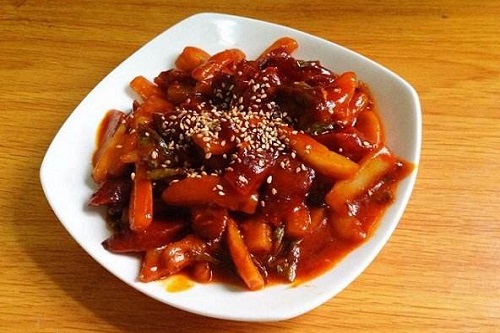在韩剧中,出现频率最高的一款韩国街边小吃之一就是炒年糕,炒年糕在韩剧中经常可以看到,色泽鲜红,看起来非常有食欲,也是很多人都喜欢吃的韩国美食。炒年糕是用的是辣椒酱、糖、葱、水制作而成,韩式炒年糕不油不腻,吃起來甜辣爽口,滋味鲜美。