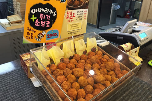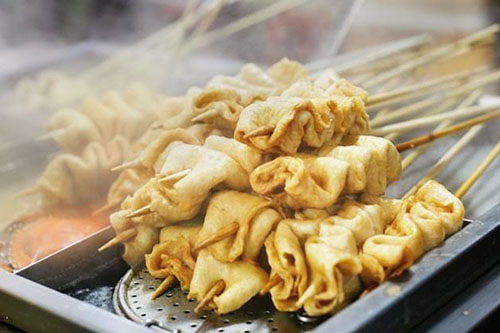 这个肉串在韩国也是很有名的,一般在“祝祭”活动中一定会吃到的一种韩国街边小吃。韩国人喜欢喝酒,而这种肉串儿和鸡肉串儿就是最好的下酒菜之一,鸡肉串儿有很多的味型,添加了蔬菜烤制而成,香味浓郁。