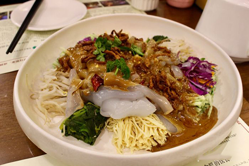 拉皮也是一道鸡西小吃特色美食,属于家常菜的一种,食材丰富,造型好看,很多人喜欢吃。五彩拉皮的主要食材有粉皮、胡萝卜、鸡蛋皮,调料为麻酱、辣椒油、白砂糖等等,这道菜是凉拌菜,所以很下饭,在,该菜品主要是通过凉拌的做法而成。