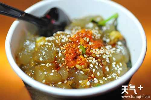 焖子很多地方都没有,但是在大连很火,红薯淀粉切块在锅里煎炒至表皮酥脆,然后加上喜欢的配菜,淋上调料和葱花香菜,入口外酥里嫩,外皮越嚼越香,内里软糯鲜嫩,蘸上酱汁,让人忍不住口水直流!