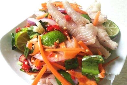 摏鸡脚是地道的傣家风味,也是云南特色地摊小吃中比较火的,这道小吃的主料就是鸡脚,把盐水煮过的鸡脚放进石臼中,重力砸碎,再加入调料进行调味,配上碎花生,大芫荽,小米辣,柠檬片,黄瓜条等食材,混合在一起就可以了,摏鸡脚风味独特,带着酸酸辣辣的感觉,是一道开胃小吃。