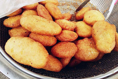 玉龟油炸糕色泽金黄,香甜的口感相当的吸引人,炸糕其实并不好做,调面的软硬度、馅料的口味,油炸的火候等都很重要,好吃的炸糕香喷喷,热乎乎,酥酥的,一咬糖汁儿就流出来。玉龟油炸糕混合着其他的食物一起吃,外交里软。