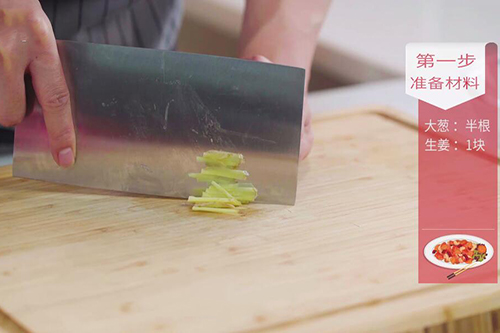 1.姜1块切姜丝,大葱半根切葱丝;