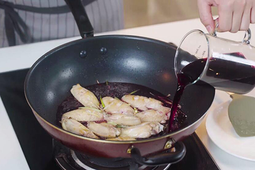 7.倒入红酒没过鸡翅;