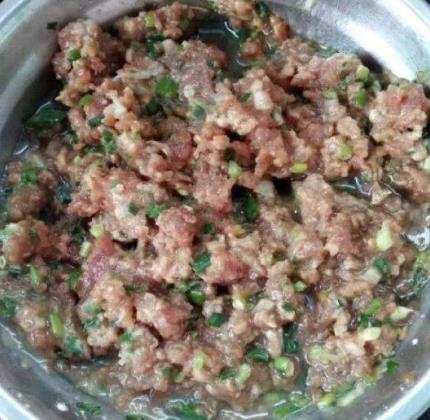 葱不要提前放,要在最后要放切碎的蔬菜之前才能放进肉馅中,并且要倒一定量的香油拌好了,这时候的肉馅味道就会非常的迷人了。