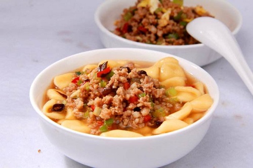 猫耳朵名字很特别,其实是一种面食,因为面块和猫耳朵很像,所以取名猫耳朵。猫耳朵和意大利的通心粉相似,猫耳朵制作很简单,将面做成猫耳朵状,然后下锅煮,煮熟之后浇上鱼虾卤汁,吃起来润滑可口,带着虾肉和鱼肉的鲜味。这道小吃至今依然很受欢迎,在很多的餐厅都可以吃到,其中知味观的猫耳朵比较有名。