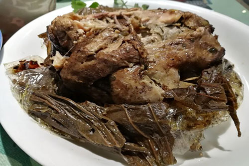 叫化鸡是江苏常熟的特色美食,在苏州,这道菜也是名菜,叫花鸡也经常被叫做常熟叫化鸡、煨鸡。把鸡肉用泥土和荷叶包好,然后进行烧烤,加工成一道菜品,叫花鸡色泽枣红明亮,芳香扑鼻,板酥肉嫩,入口酥烂肥嫩,风味独特。