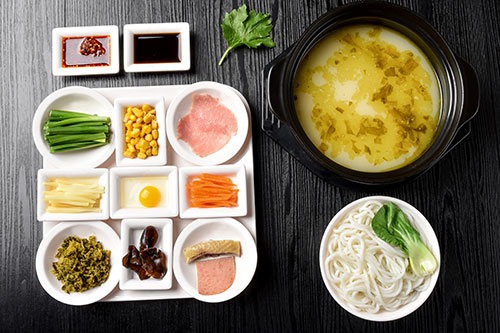 传说有一书生,喜欢游玩,不愿读书。其妻子对书生喜游乐,厌读书深感忧虑。对书生道:“你终日游乐,不思上进,不想为妻儿争气吗?”听闻妻子的话,书生深感羞愧,就在南湖筑一书斋,独居苦读,妻子三餐均送到书斋。书生学业大进,但是日渐瘦弱。妻子很心疼,宰鸡煨汤,切肉片,备米线,给书生送饭。儿子年幼,戏将肉片放到汤中,妻子速=迅速将肉片捞起,但是肉片已熟,尝起来还十分好吃,非常高兴,即携罐提篮,送到书斋。因操劳过度,妻子晕倒在南湖桥上,书生闻讯赶来妻子已经醒了,汤和米线均完好,汤面浮油没有一丝热气,以为汤已经凉了,用手掌捂汤罐,发现灼热烫手,问妻子制作方法,妻子一一说明。书生说道,此膳可称为过桥米线。后来,书生在妻子的精心照料下,考取了举人,这事被当地群众传为佳话,从此过桥米线名声开始流传。过桥米线怎么来的 过桥米线的由来