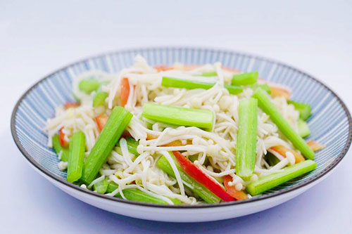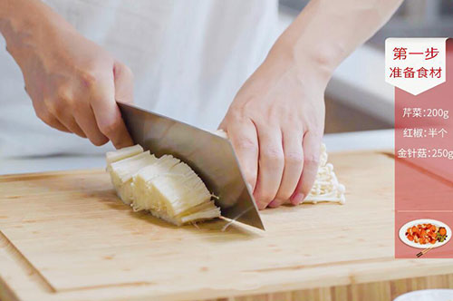 芹菜金针菇是一道非常具有特色的家常菜,首先金针菇是很好的菌菇类食品,芹菜也有降压的效果,芹菜金针菇味道好,而且口感也比较清爽,芹菜金针菇的做法大家都学会了吗?步骤简单,你也可以在家里做。