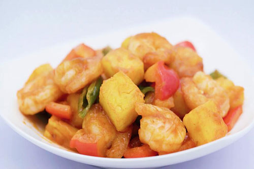 菠萝虾球的做法 家常菠萝虾球做法大全今天介绍一道经典粤菜菠萝虾球,菠萝虾球的做法很简单,准备食材虾仁,菠萝,红甜椒等,菠萝肉放盐水中浸泡5分钟,加食材腌制10分钟,将虾仁翻炒至变色捞出,另起锅放番茄酱,白糖等,放青红椒块和菠萝块翻炒半分钟,放虾仁翻炒均匀出锅即可。