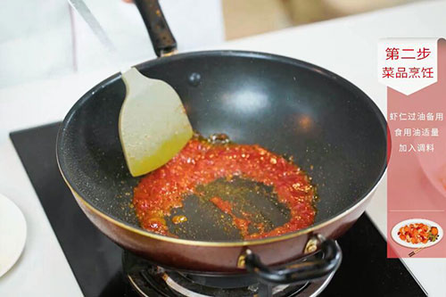 6.放入虾仁翻炒,直至虾仁均匀裹上酱汁即可。