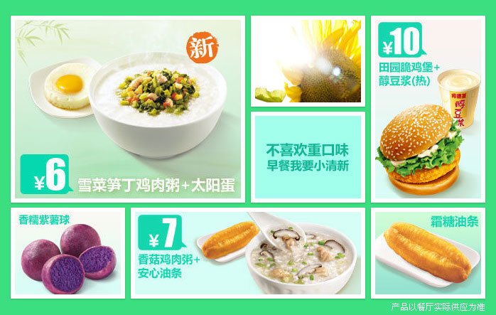 小编为大家收集了肯德基早餐几款餐品的价格以供参考,可以看到它家的粥价格在6、7元左右,价格都不是很贵,可以放心地吃一顿营养美味的早餐。