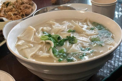 方城烩面是一道传统面食小吃。聪明的烩面师傅们结合着方城的特色——回族较多,从而羊肉资源丰富,进而摸索改进形成今天的豫南特色美食——方城烩面。方城盛产小麦,方城烩面是方城名吃之一。方城烩面看似容易做,可是要达到真正的口味绝非一般人所能做的。欲辨其是否正宗方城烩面,一观汤,二看面,三尝辣椒油。